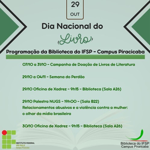 Em comemoração ao Dia Nacional do Livro, celebrado em 29 de outubro, o IFSP campus Piracicaba...
