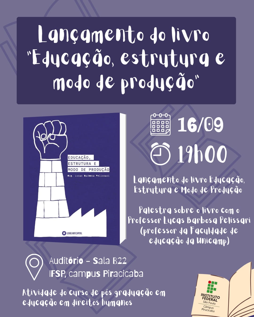 Curso de Pós-Graduação em Educação em Direitos Humanos Convite para o lançamento do Livro Educação, Estrutura e Modo de Produção, com a presença e palestra do professor...