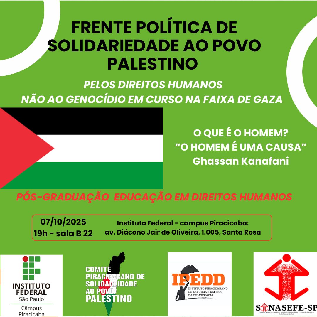 Atividade em solidariedade ao povo Palestino, no Instituto Federal de São Paulo, campus Piracicaba Iniciativa do curso de Pós-graduação em Educação em Direitos Humanos, em parceria...