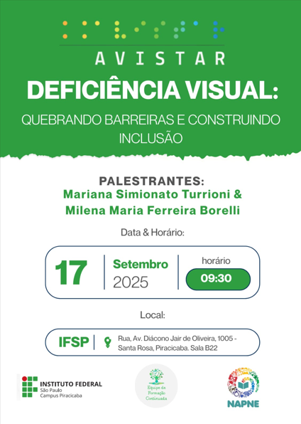 “Deficiência Visual: Quebrando Barreiras, Construindo Inclusão”Promovida pela Avistar, entidade sem fins lucrativos dedicada à inclusão de pessoas com deficiência visual, a...